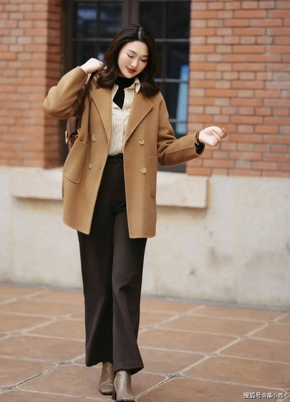 然而,冬季穿搭并不总是要严肃。棕色的大衣,搭配一条黑色阔腿裤,优雅而不失活力,低调而不失时尚感。它那种深沉的色彩组合,仿佛带着一股温暖的力量,温暖着身躯,抚慰着内心。而这种搭配的美,正是在于它那种不张扬、不做作的气质。黑色的阔腿裤与棕色大衣相得益彰,低调的色彩交织出一种无声的美感。
