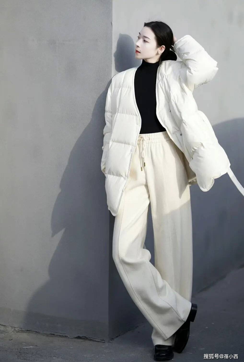 白色——这个在寒冬中最为清新、纯净的颜色,犹如一抹新雪,带着一种不言而喻的高雅。白色的羽绒服搭配一条同色系的阔腿裤,仿佛与世隔绝,一切烦恼和纷杂瞬间都消失在了纯净的氛围之中。这种搭配,让我们不仅看上去更加清新脱俗,更是在内心深处感受到一种无声的平静与满足。而当我们将白色羽绒服与一条蓝色的牛仔阔腿裤结合时,温暖的色调中透出了一丝丝悠然自得,仿佛为这冬日带来了微风和阳光。